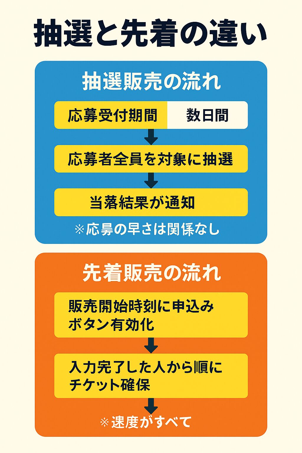👉 先着販売だけでなく、抽選方式のチケットでも当選率を上げる方法があります。